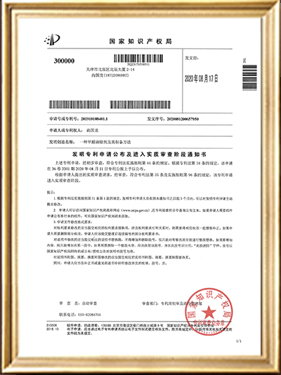 • 實用新型專利證書(一種甲醛清除劑的原料存儲